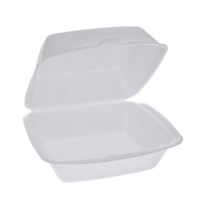 Concha de poliestireno con bisagras, 6 x 6 x 2,75, 500 unidades por caja