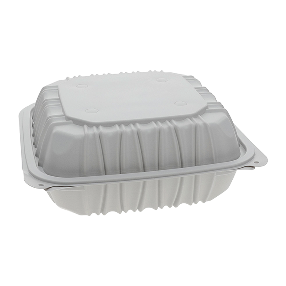 A Albert's Distribution oferece recipientes descartáveis articulados empilháveis e práticos de PP e MFPP, perfeitos para o transporte de alimentos. Nossos recipientes de PP são feitos de plástico translúcido, proporcionando fácil visibilidade, enquanto nossos recipientes de MFPP ecológicos são feitos de uma mistura de fibra mineral e polipropileno, tornando-os totalmente recicláveis. Esses versáteis recipientes tipo concha são ideais para uma ampla gama de aplicações para viagem e podem ser levados ao micro-ondas, permitindo que os clientes reaqueçam seus alimentos em casa. Eles são adequados para alimentos quentes e frios — perfeitos para massas, saladas, batatas fritas, sanduíches e muito mais.