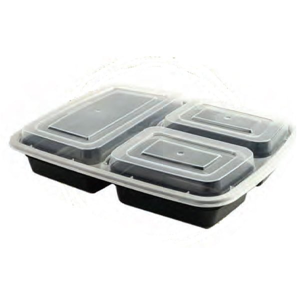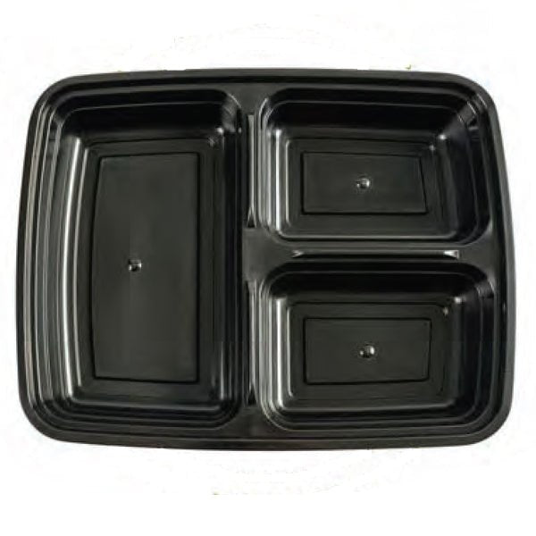 Retangular resistente para micro-ondas, 32 oz. 9" x 6,7" x 1,5" 3 compartimentos 150/Caixa